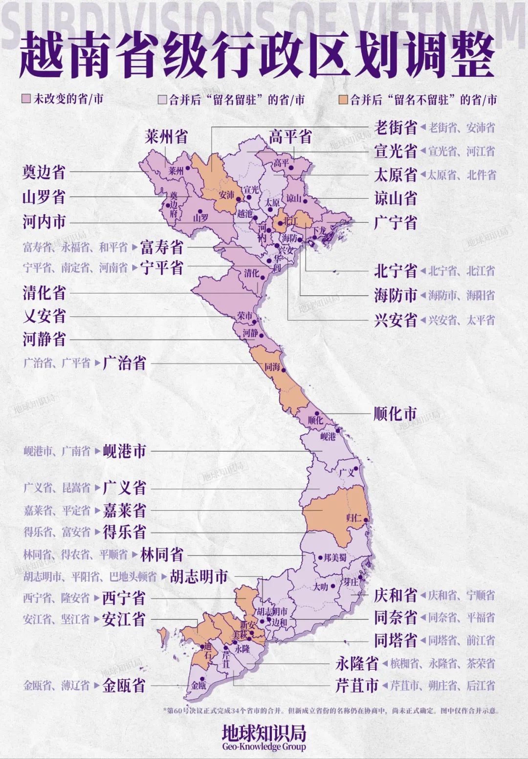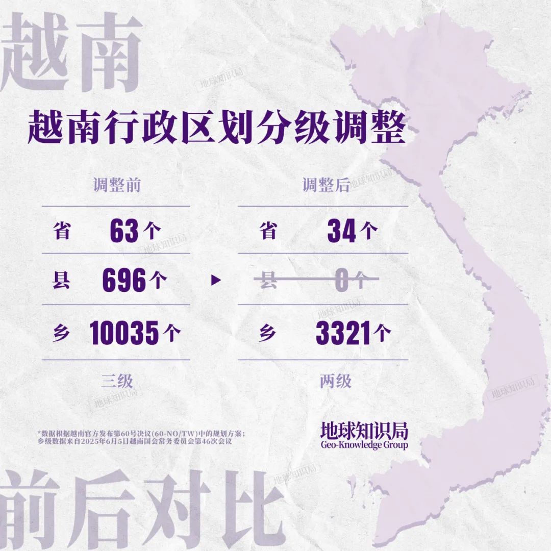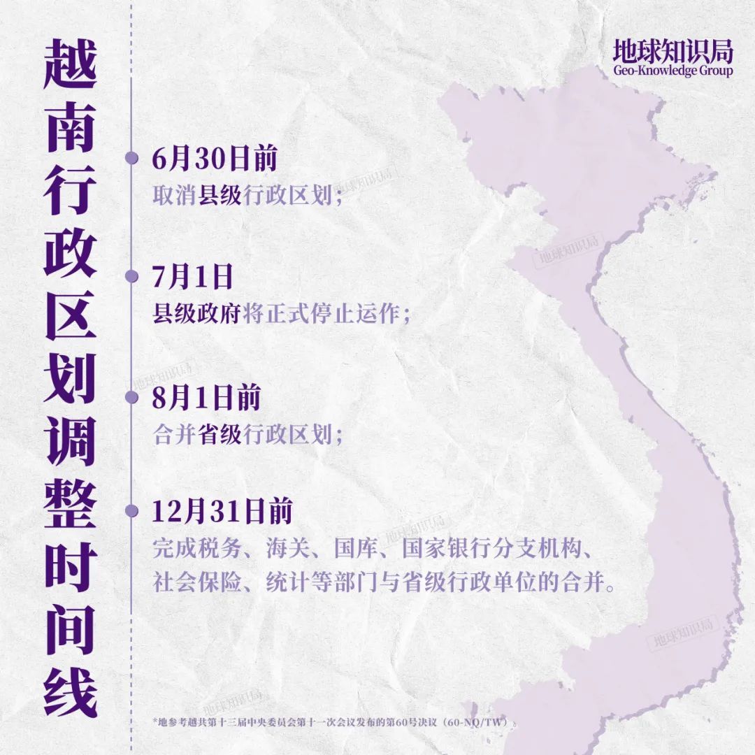 关于行政区划调整,越南自己也给出了时间线。县级行政区划,要在6月30日前取消,自7月1日宪法修正案及《地方政府组织法》修订案生效起,县级政府将正式停止运作;省级行政区划,要在8月30日前完成合并。