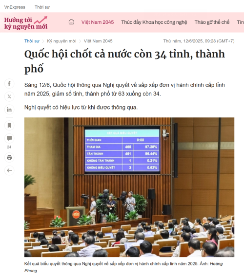 但实际上的结果,根据6月5日的最新动态,越南乡级行政单位重组后为3321个乡级单位,总体减少约67%,低于内务部草案原定的70-75%减幅目标。